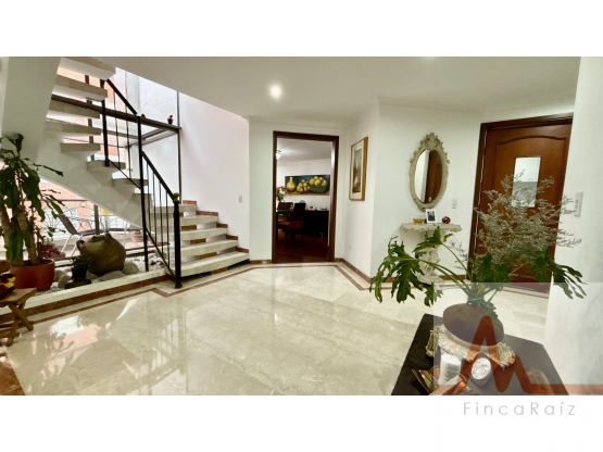 Amplio, iluminado y ubicado.   Increible hall de entrada; sala, comedor y estudio independientes, balcón (con acceso desde la sala), baño social, cocina cerrada con lavanderia independiente y cuarto y baño de servicio. La sala y el comedor cuentan con chimeneas independientes.  En el segundo nivel la totalidad del área privada: tres alcobas con baño privado y la principal y una de las auxiliares con vestier, la restante con closet.  Se complementa el apartamento con dos garajes lineales y deposito.